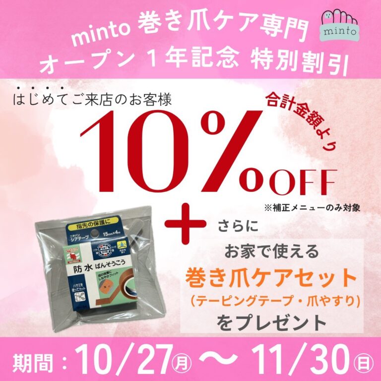minto は巻き爪をはじめ、様々な爪のトラブルの改善を専門としたケアサロンです。